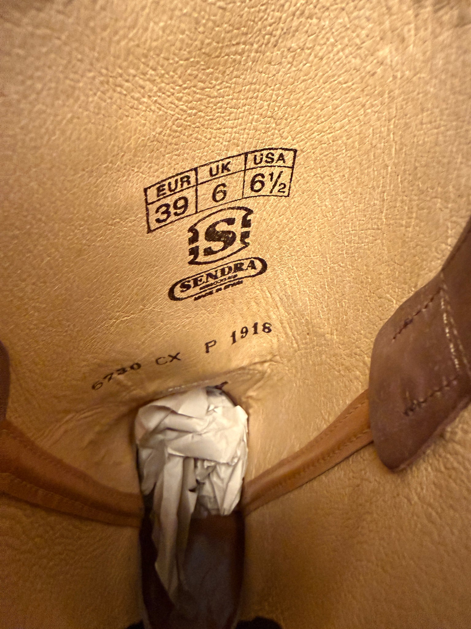 nieuwmaat 39kuit omtrek 37,5 cmhak hoogte 3,5 cmtotale laars hoogte 32 cmwinkelwaarde € 300type 1918kleur bruin