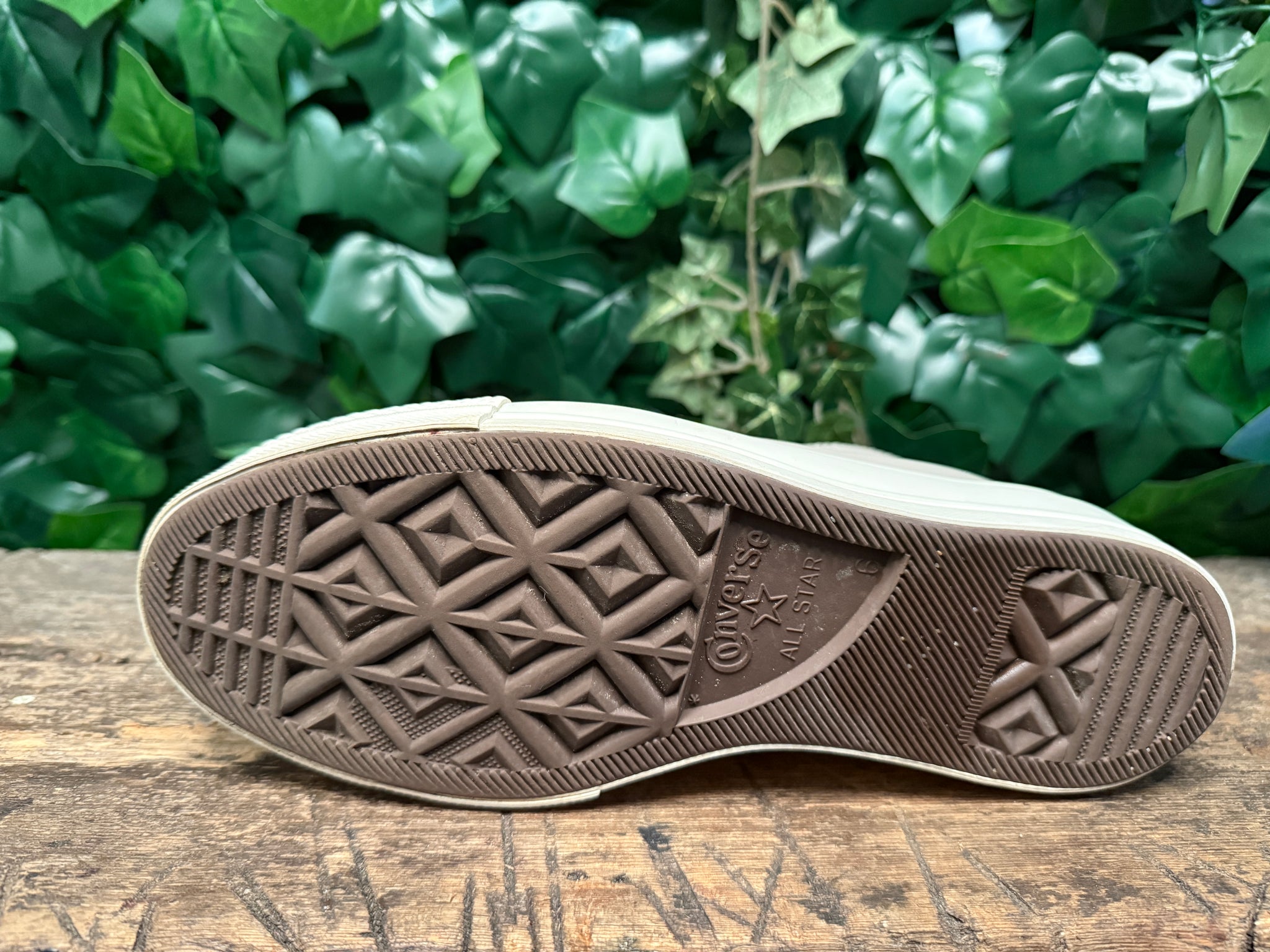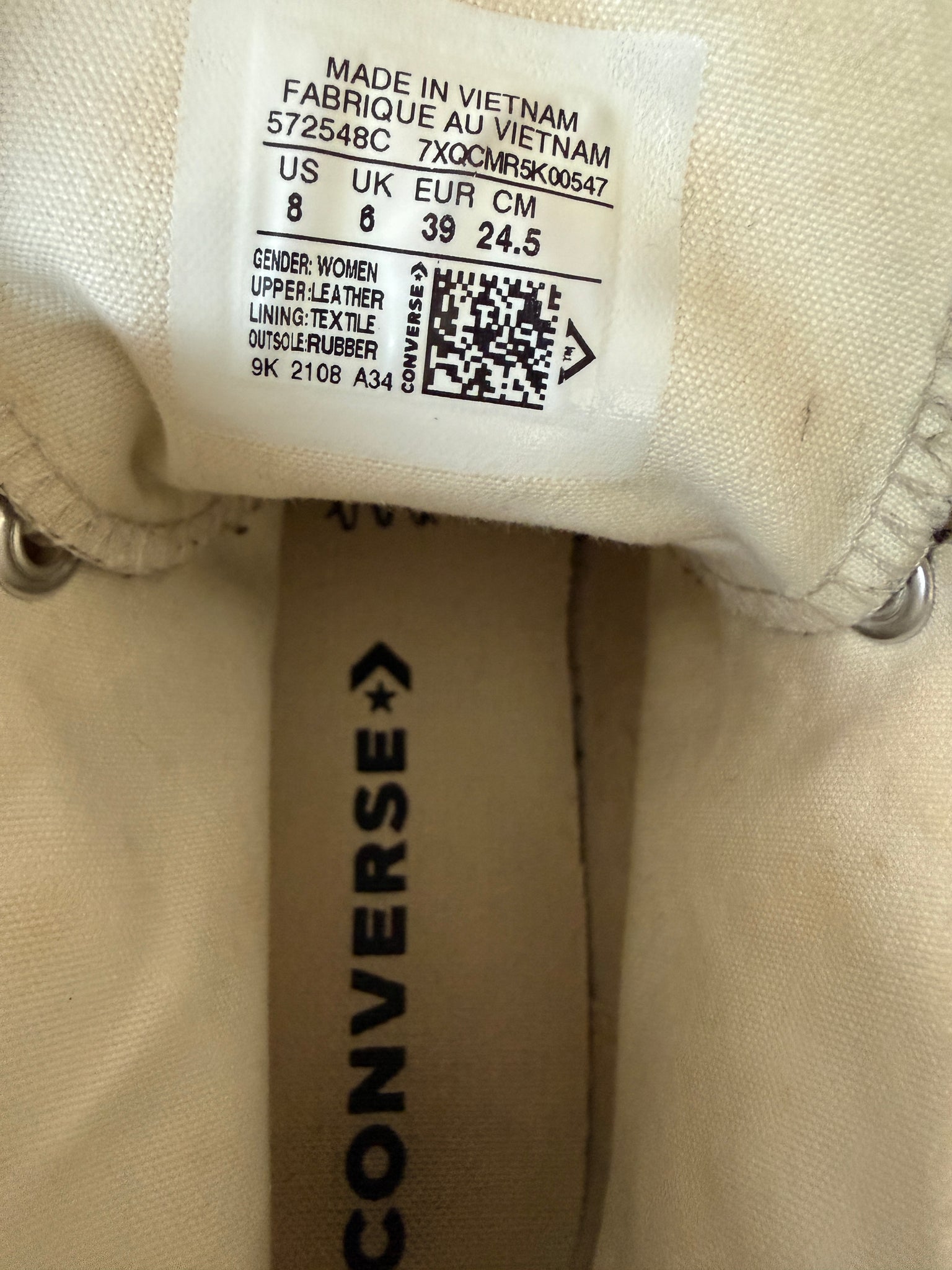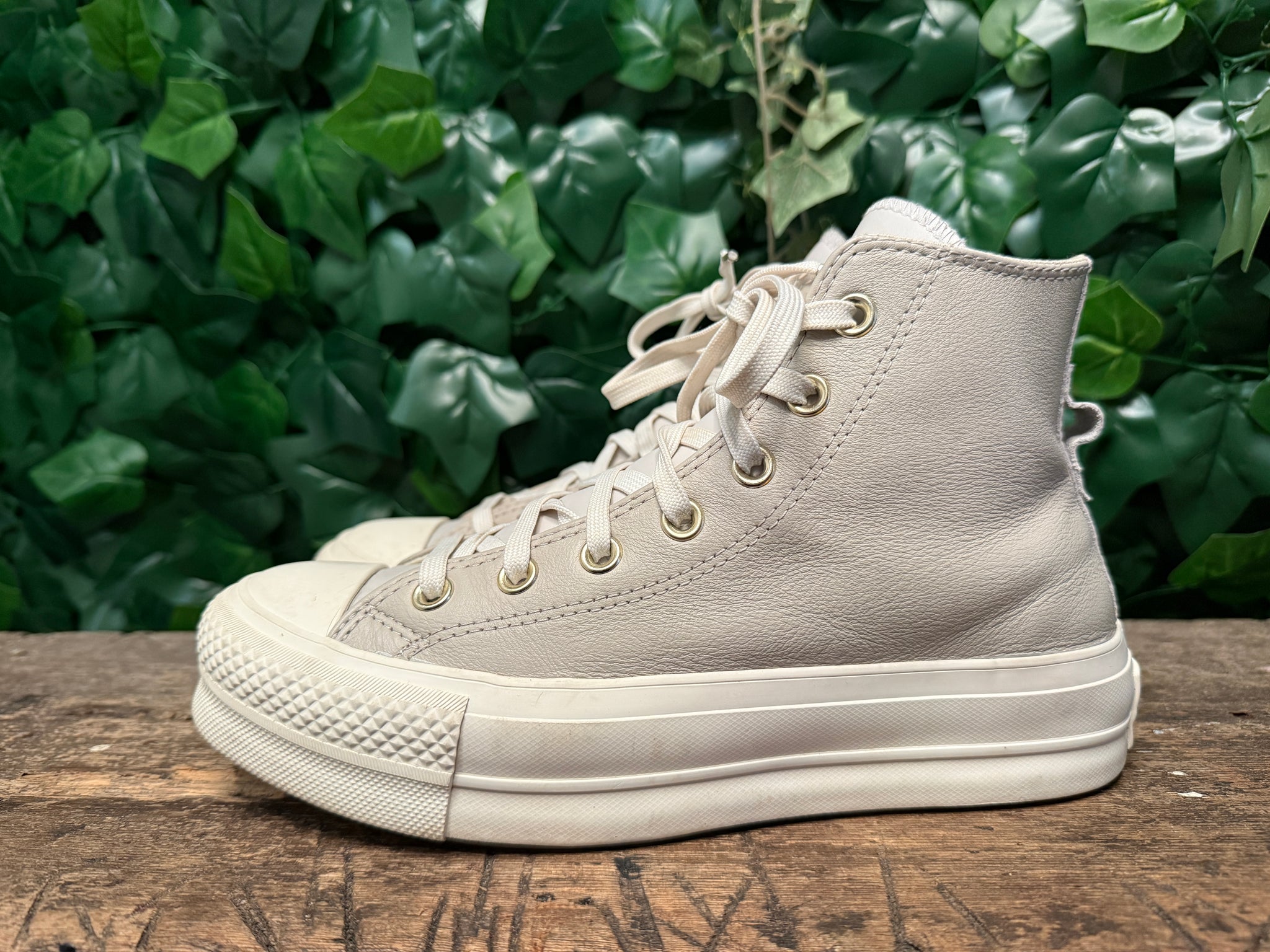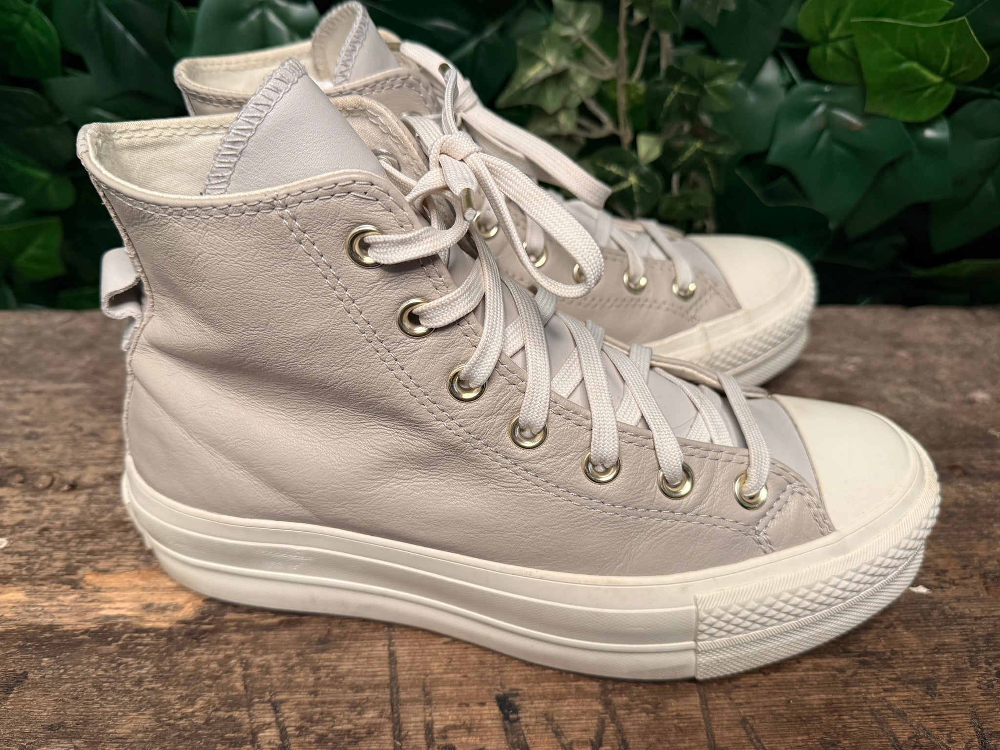 bijna Nieuwamper gedragenMaat 39leerType chuck TaylorWinkelwaarde € 99,95Kleur grijs/wit